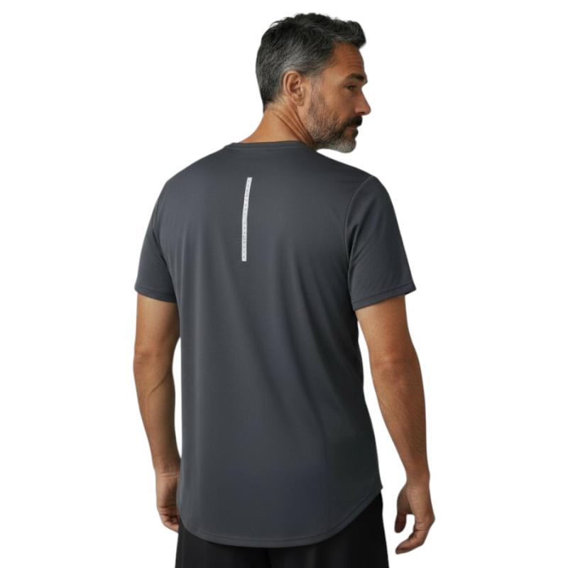 Súper respirable, esta prenda combina mesh con diseño Jacquard en el frente, con un tejido Interlock en mangas y espalda. Tiene un calce recto y su largo trasero es levemente más largo que el delantero.