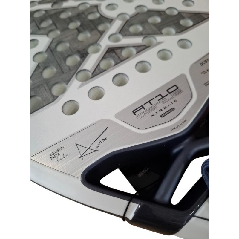 La AT10 12K Alum XTREM Lite 2026 ha sido creada junto a Agustín Tapia para jugadores que buscan el equilibrio perfecto entre potencia, control y una mayor ligereza en el juego. Con un peso entre 355 y 365 gramos, esta pala ofrece una manejabilidad superior sin sacrificar el rendimiento característico de la gama AT10.